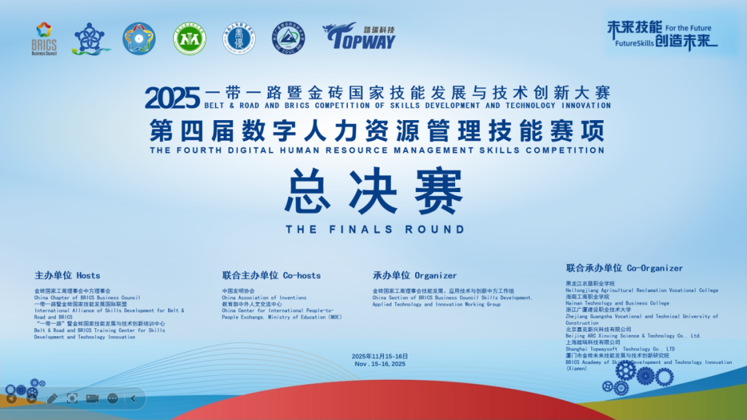 11 月 15 日、16 日上午 9:00,2025 一帶一路暨金磚國(guó)家技能發(fā)展與技術(shù)創(chuàng)新大賽第四屆數(shù)字人力資源管理技能賽項(xiàng)總決賽云端開(kāi)幕式先后召開(kāi)。